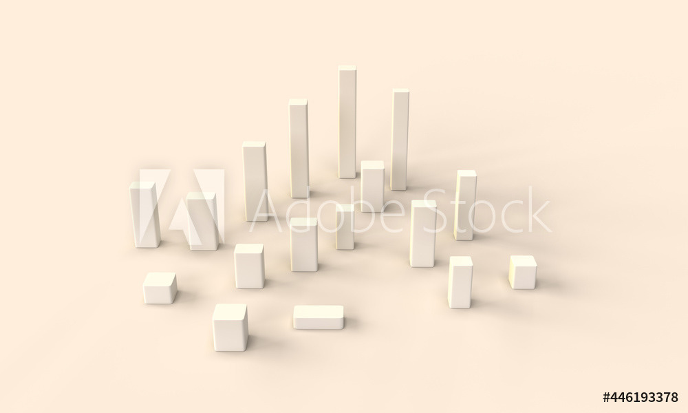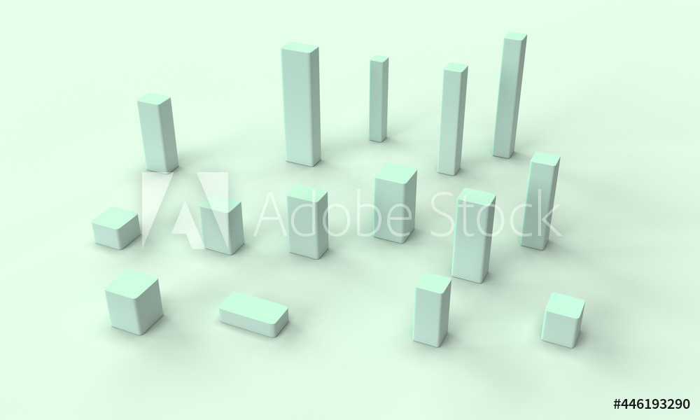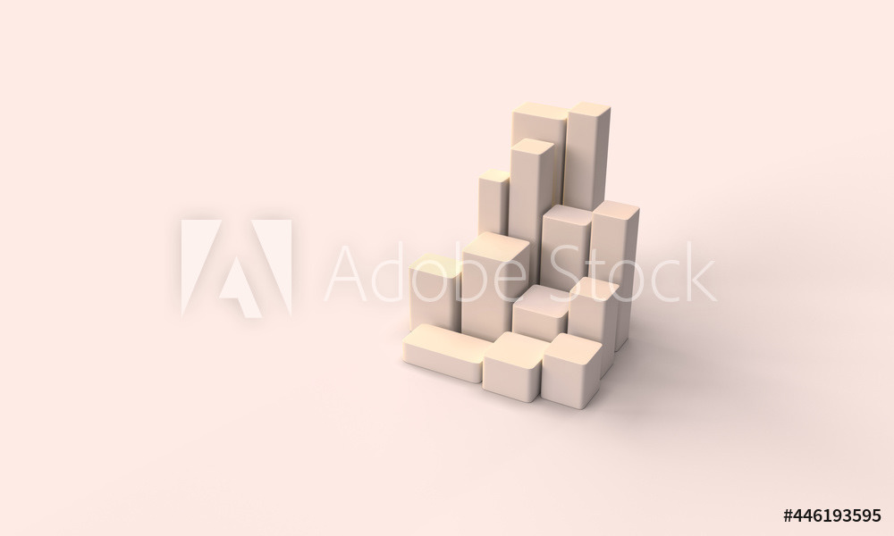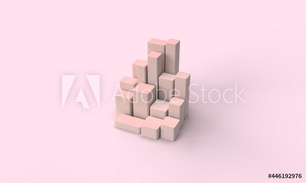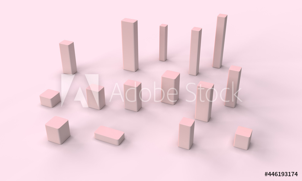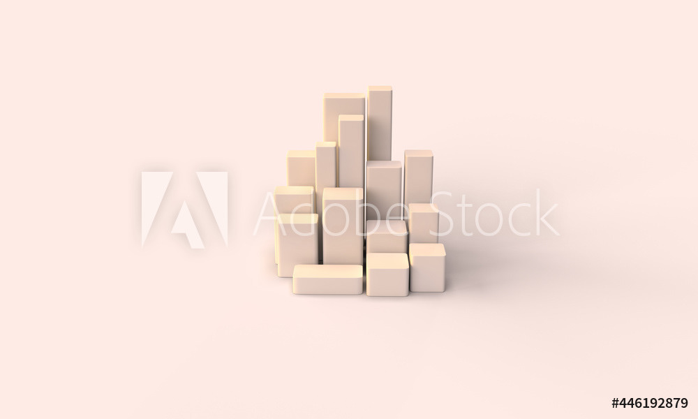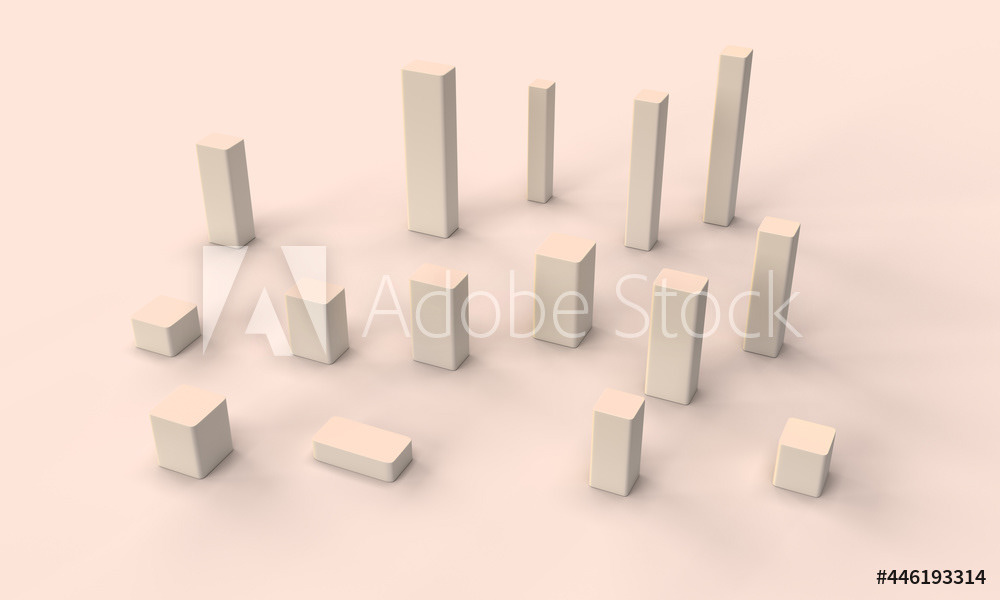 The pattern is rectangular abstract shapes on a light background. Pastel colors. Composition on the topic of the city, houses, buildings, business, construction. Modern, minimal style. 3d render of the illustration.