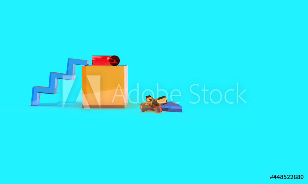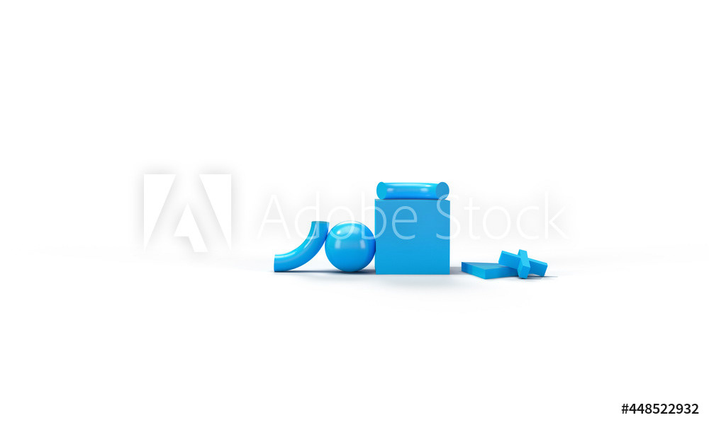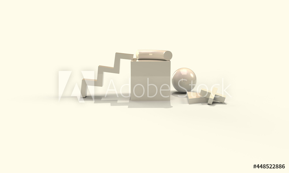 Abstract geometric shapes on a light background. Shapes of a cube, a ball, a bagel, a zigzag, a triangle. Abstract composition, minimal modern style. 3d rendering of the illustration.