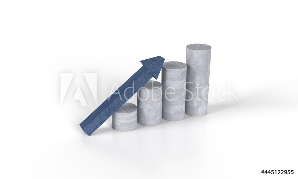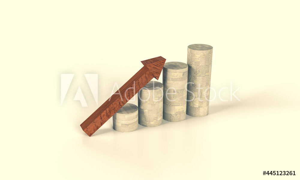 Pattern of wooden cisterns in the form of a staircase. Composition on the topic of investment, money, success. Up arrow. 3d render.