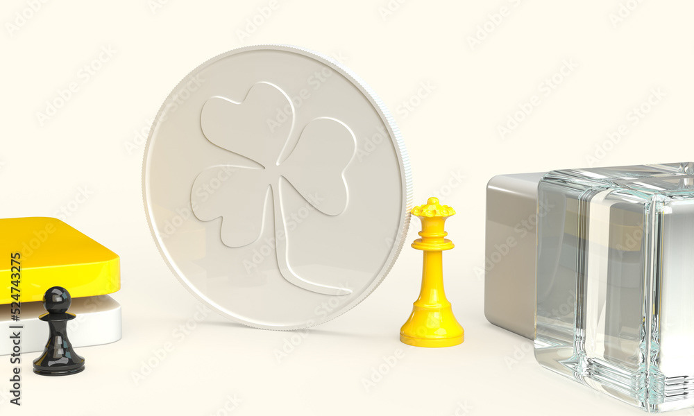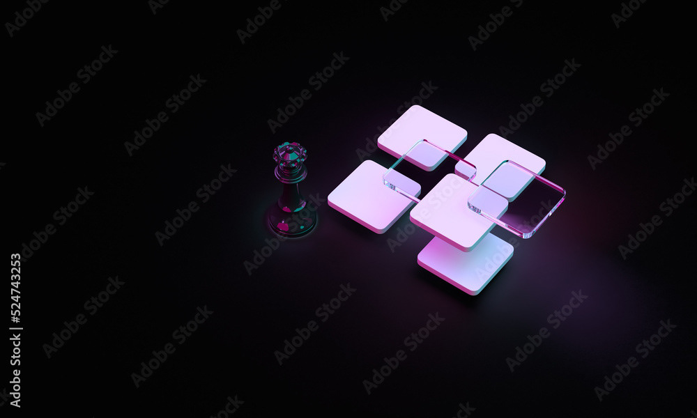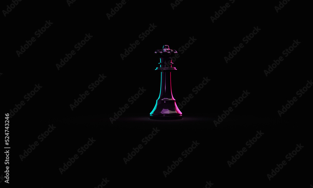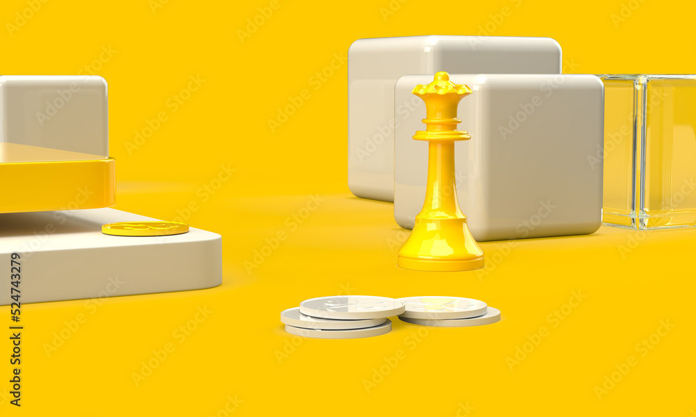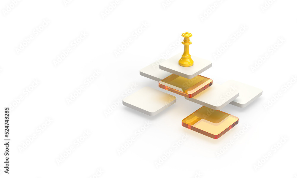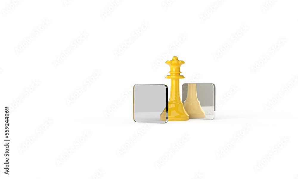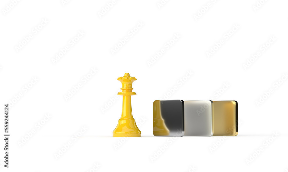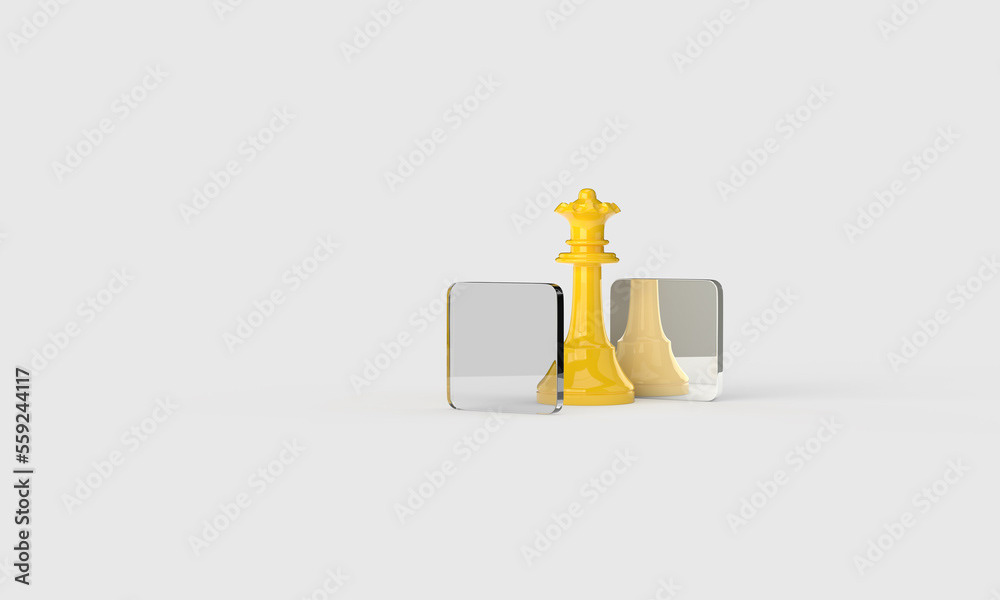 3d rendering of illustrations of chess pieces of the king and pawn, as well as the chessboard. Illustration on the topic of business, work, strategy, technology, thinking. Modern style.