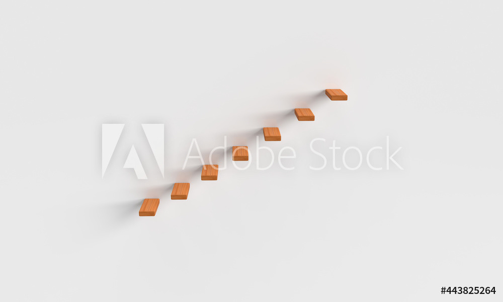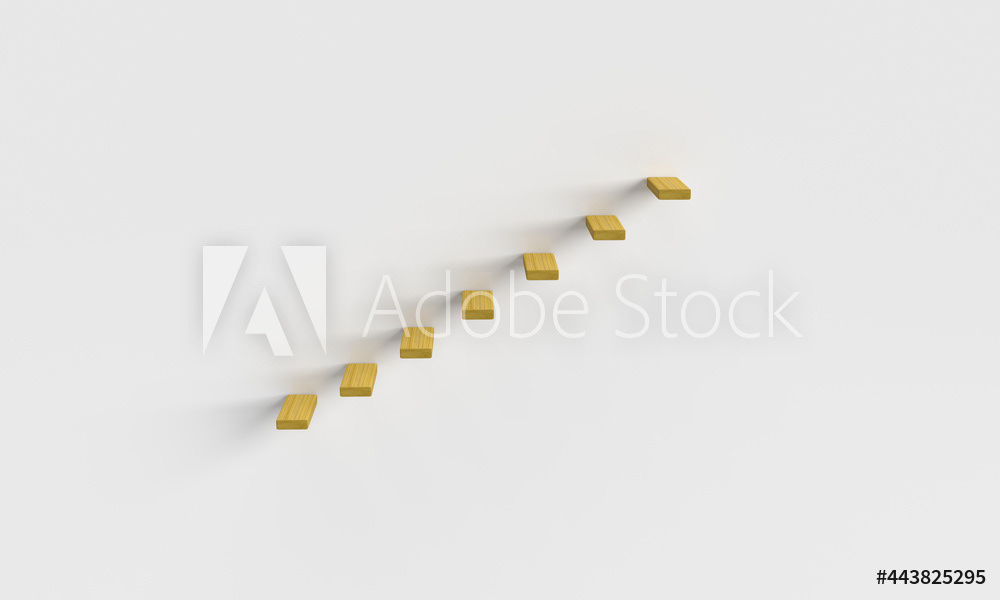 Abstract composition of the stairs up. wooden texture of the steps. Composition on the topic of business, office, work, success, investment, money and more. Light background. 3d rendering of the illustration.