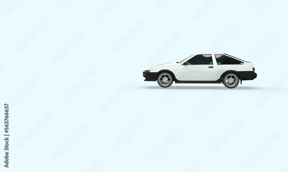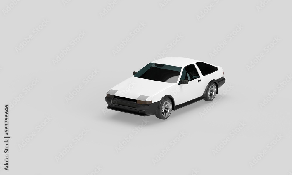3d render of the illustration of the Toyota Ae86 avomobile. Illustration on the theme of a car, movement, drift, car model.