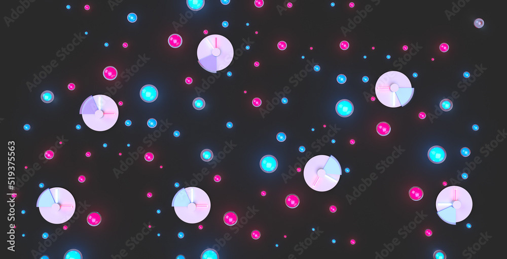 3d rendering of a dark illustration on the topic of analytics, statistics, dashboard, data analysis. Minimal style. Glowing charts, data analysis garfics.