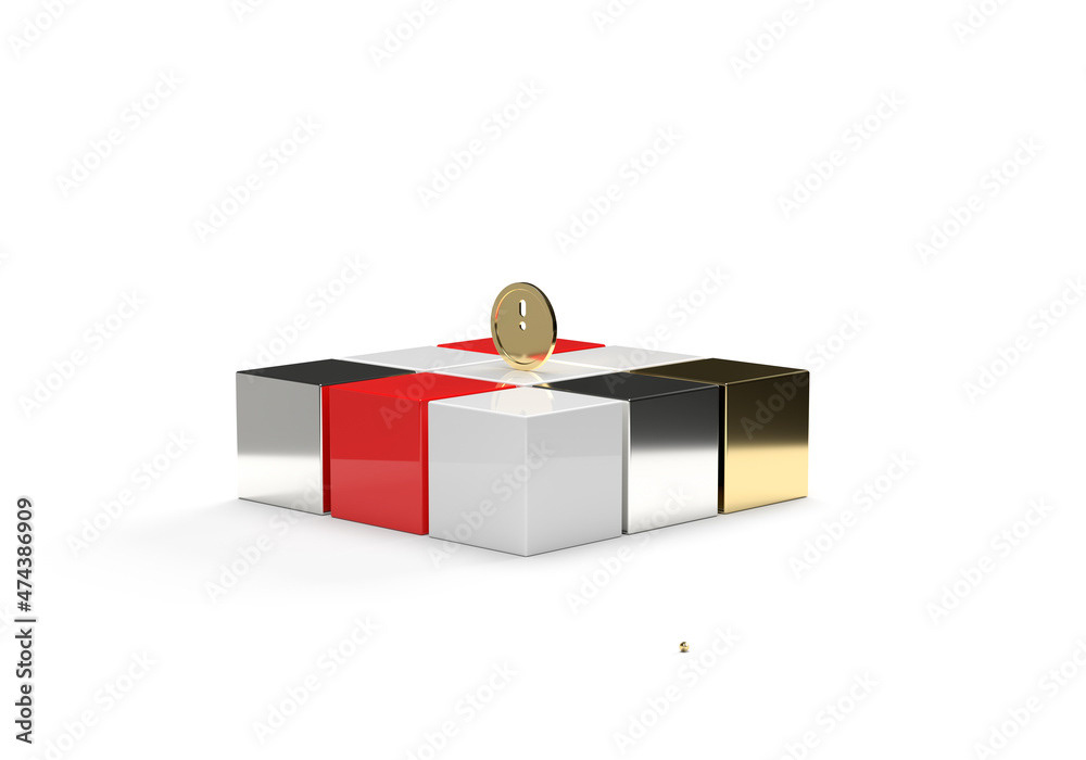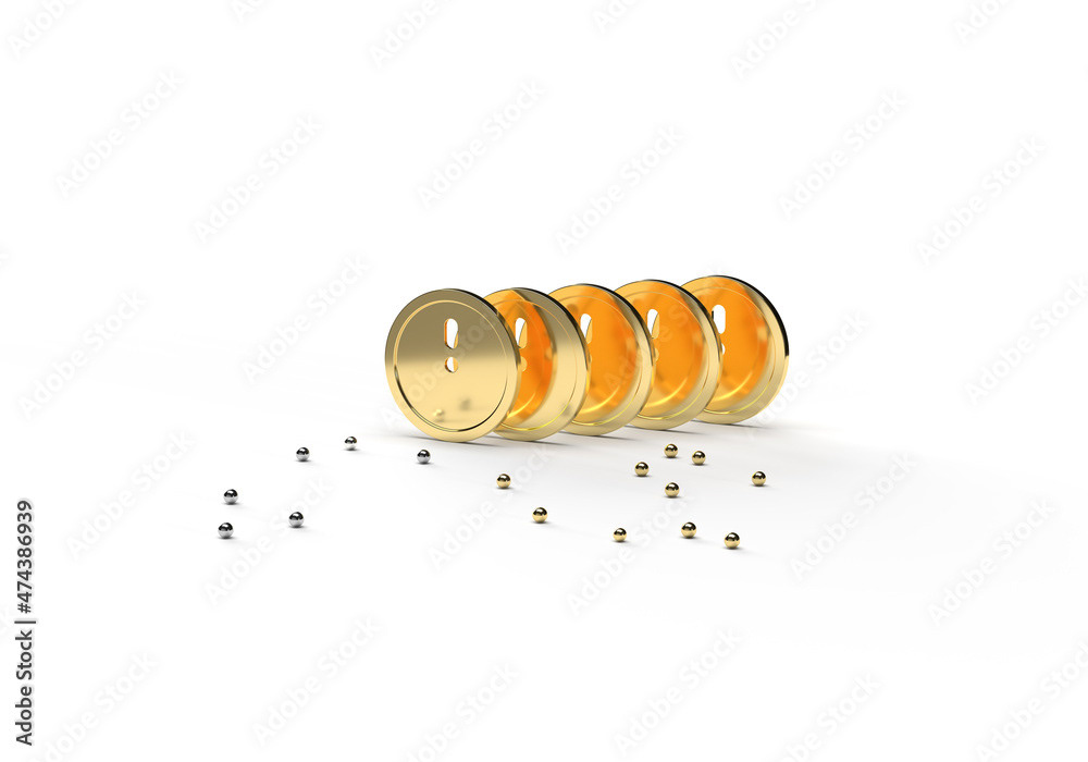 3d render illustrations on the topic of business, work and earning money. A gold coin. Minimal, modern style. Gold icons on charts, analytics and statistics.