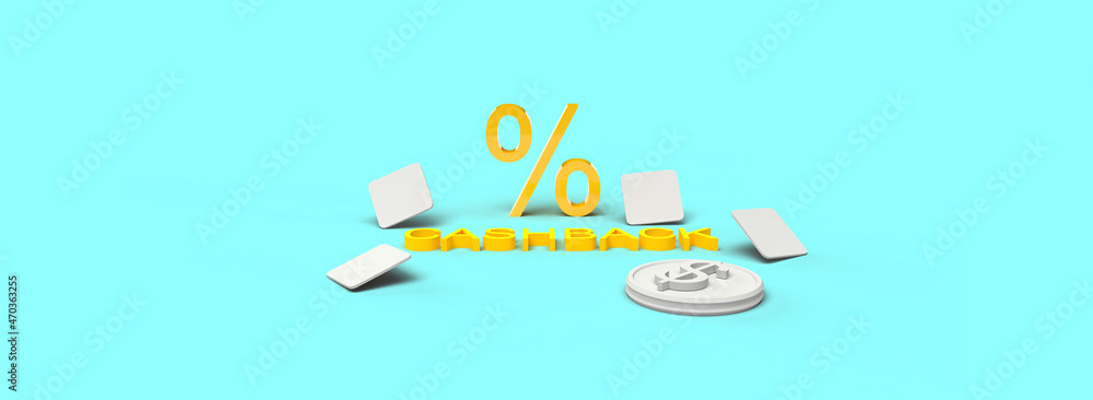 3d rendering of illustrations, backgrounds and icons on the topic of percentages, discounts, sales and cashback. Minimal modern style.