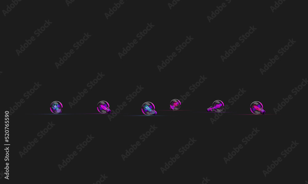 3d render illustration of a glass glowing light bulb. Modern minimal style. Illustration on the theme of light, electricity, technology.