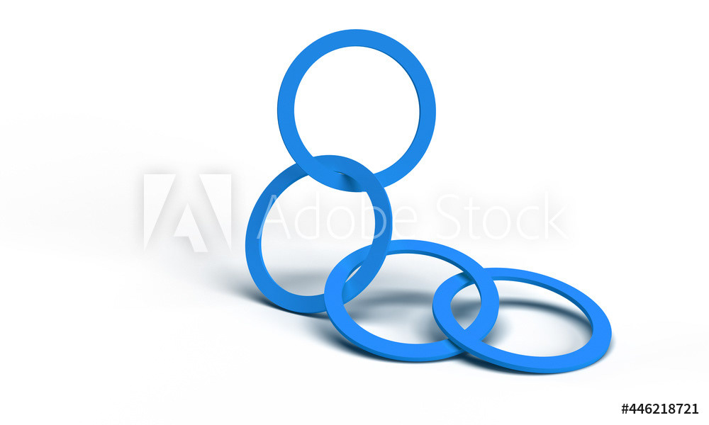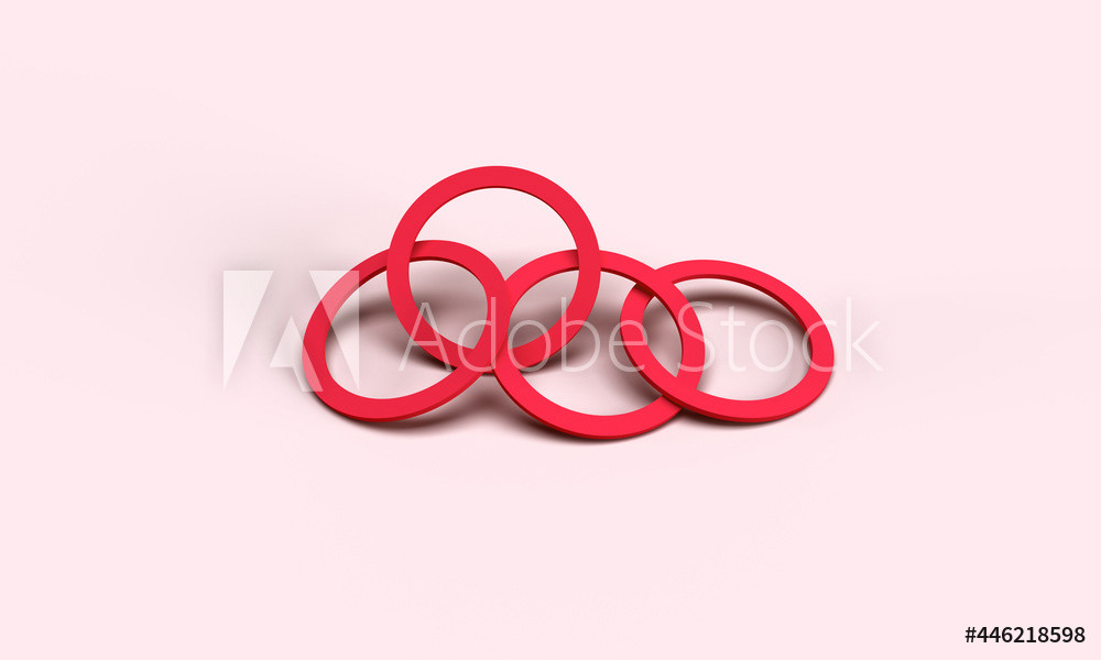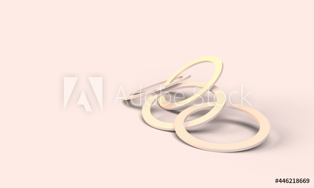 The composition of rings, circles. 3d render of the illustration. Light pastel, matte colors.