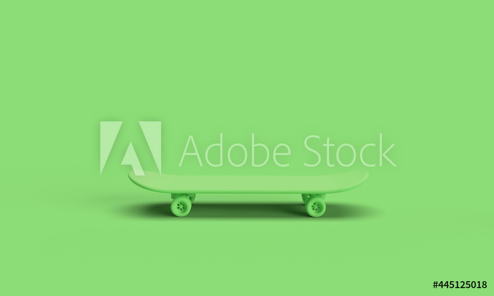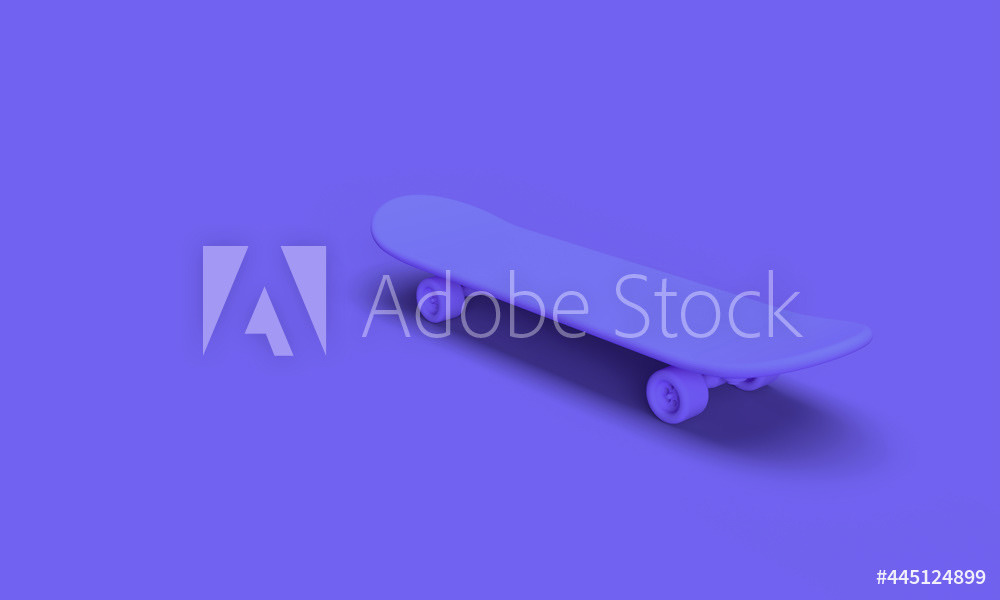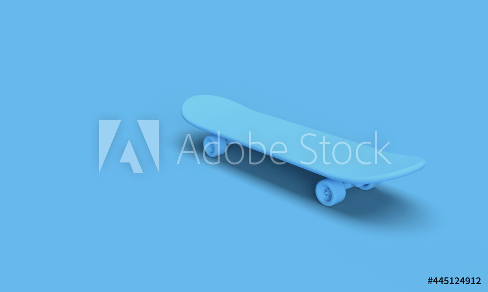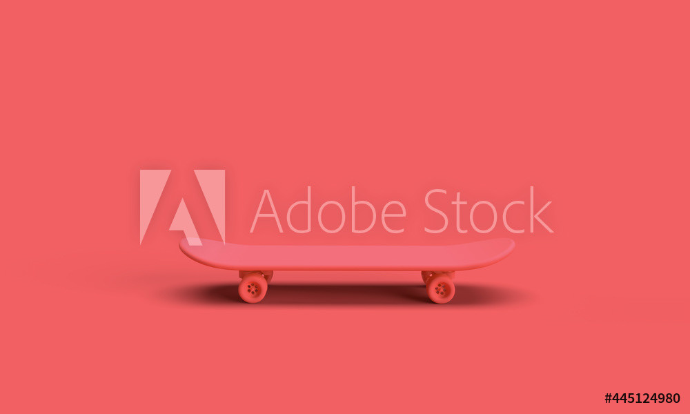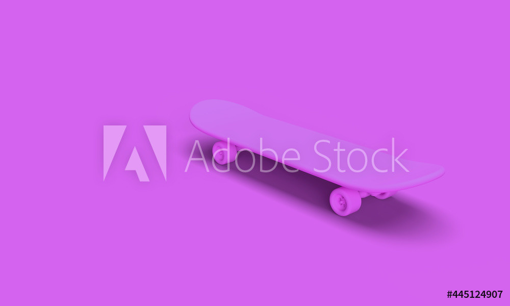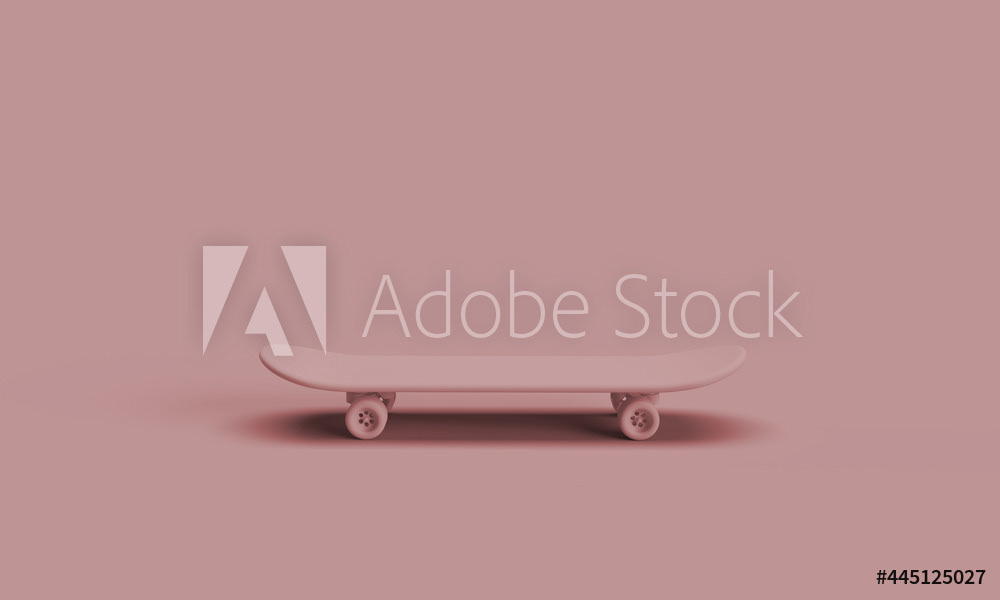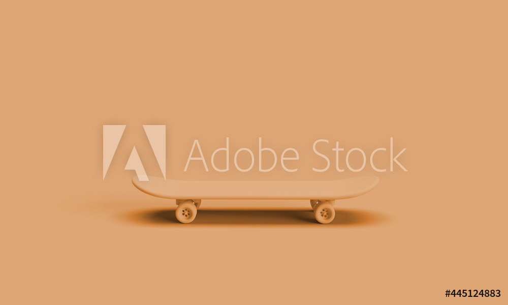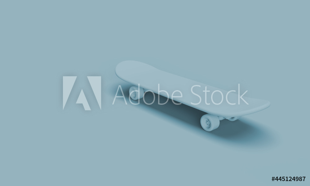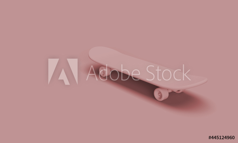 A skateboard on a light background. Minimal background design style. 3d rendering of illustrations.