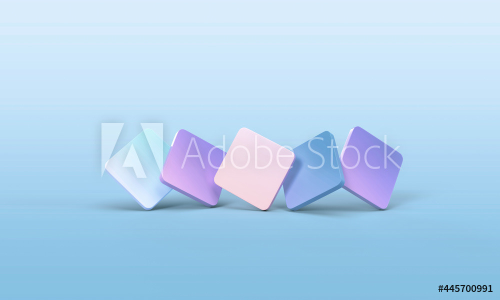 Square panels on a light background. Minimal modern style. Multicolored square with a gradient. 3d render of the illustration.