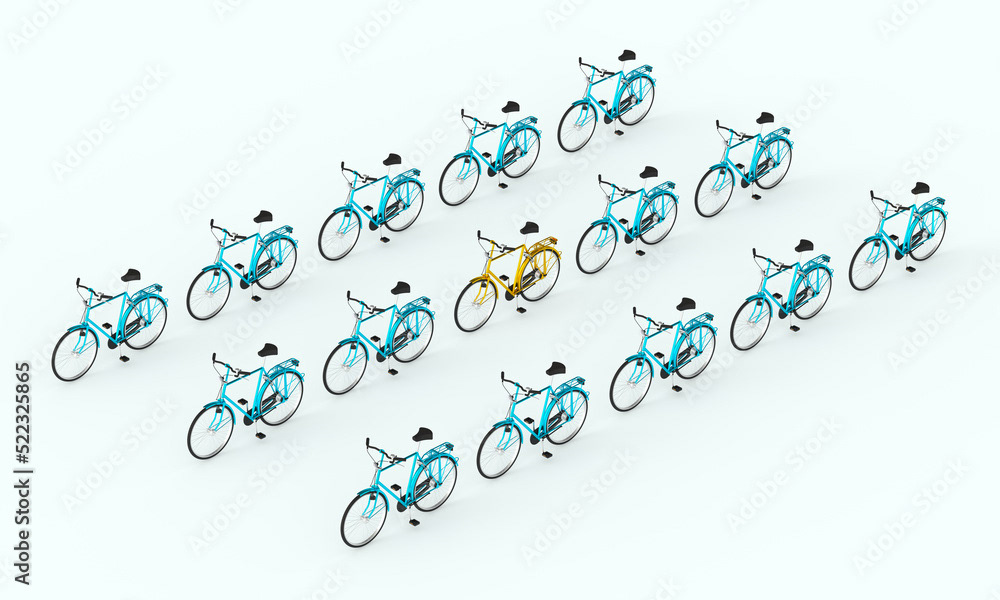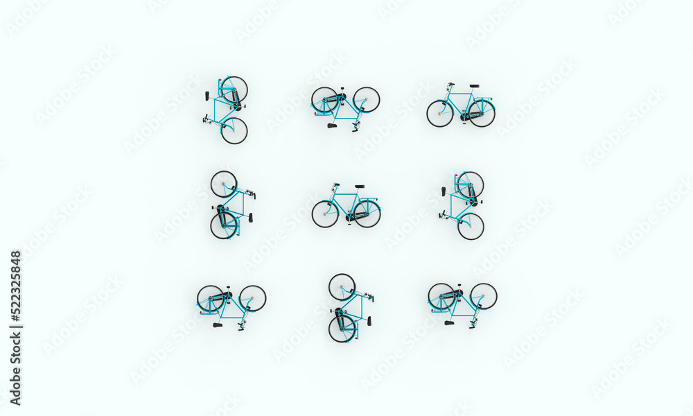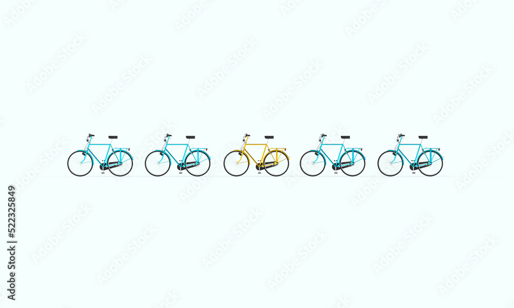 3d rendering of a bicycle illustration. Bicycle pattern. Minimal modern style. Illustration on the theme of bicycles, movement, cycling.