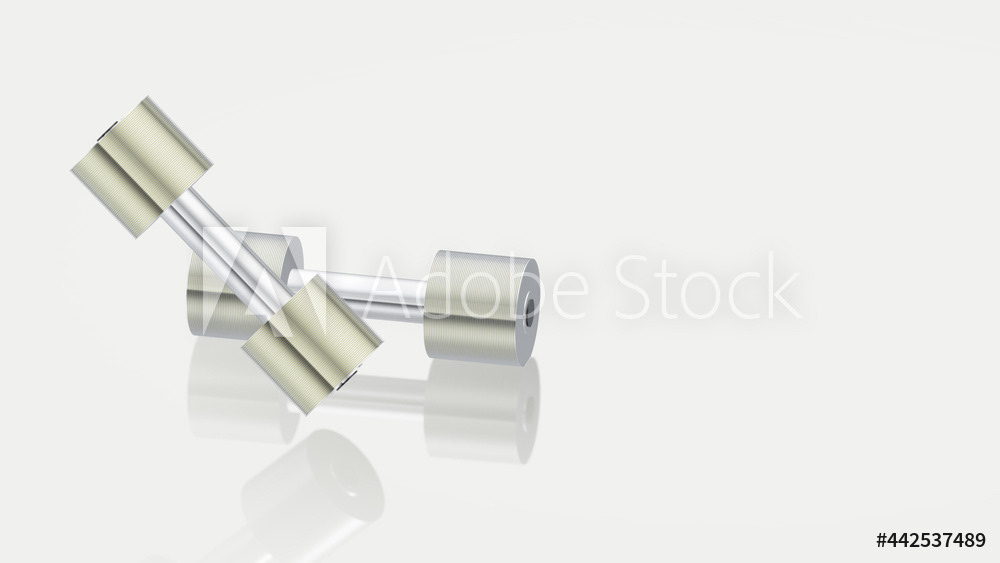 Metal dumbbells for sports on a light background. Minimal style, 3d rendering of the illustration.