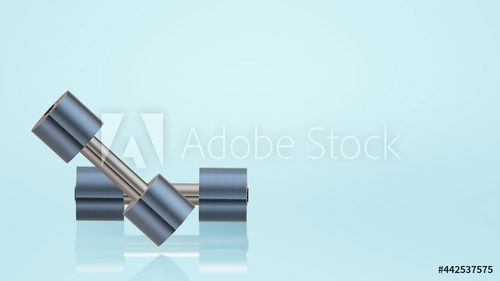 Sports equipment. Dumbbells on a light background. 3d render of the illustration. Minimal style.