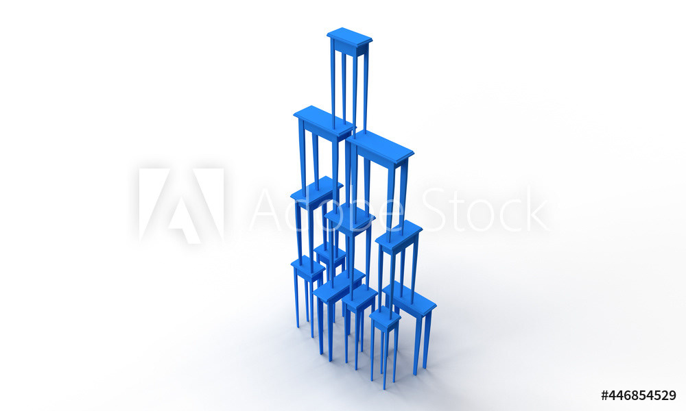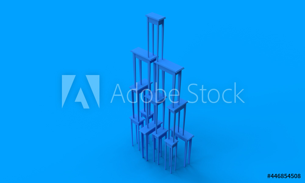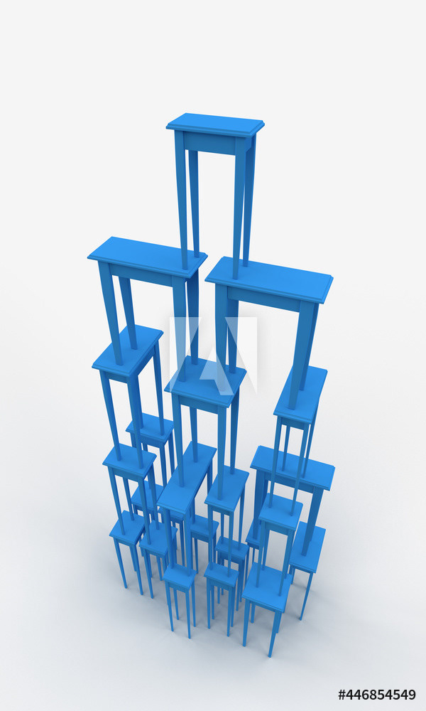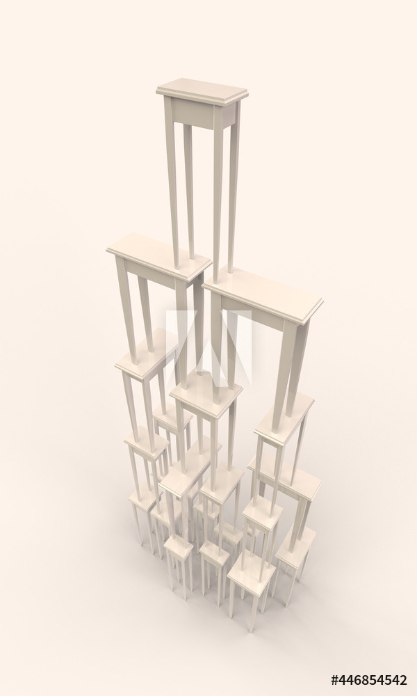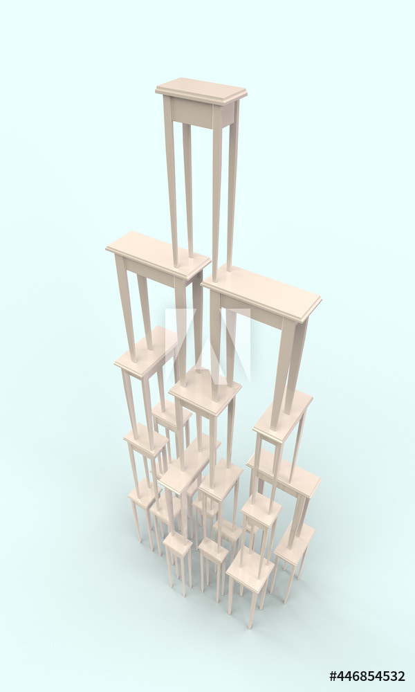 The pattern of tables in the form of a pyramid. The tables are stacked on top of each other. 3d render of the illustration.