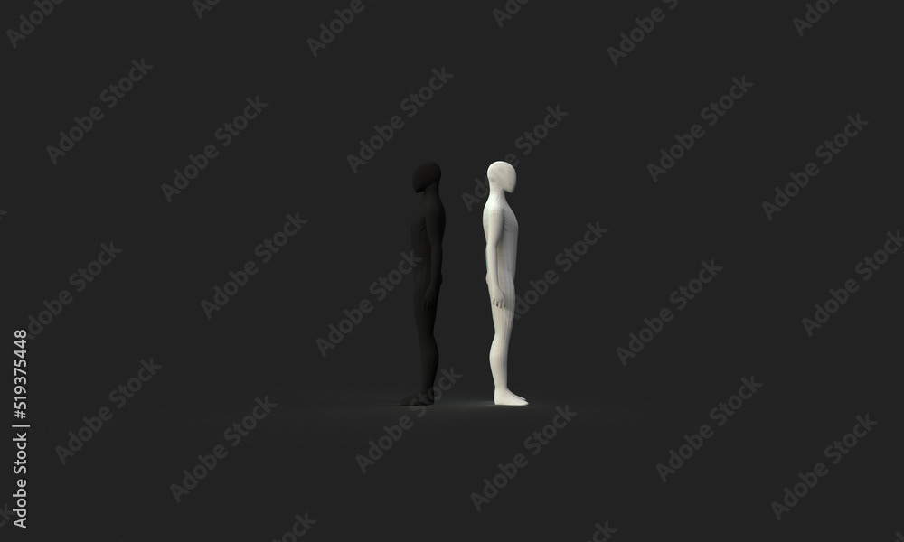 3d illustration of people in the style of robots. Modern technologies, artificial intelligence and biorobots are reflected in the illustration.