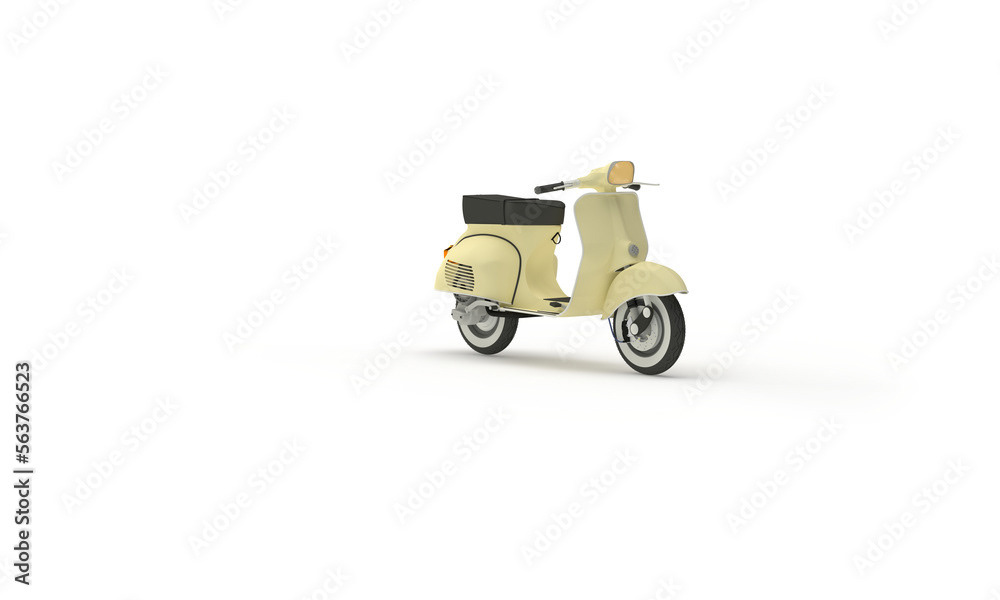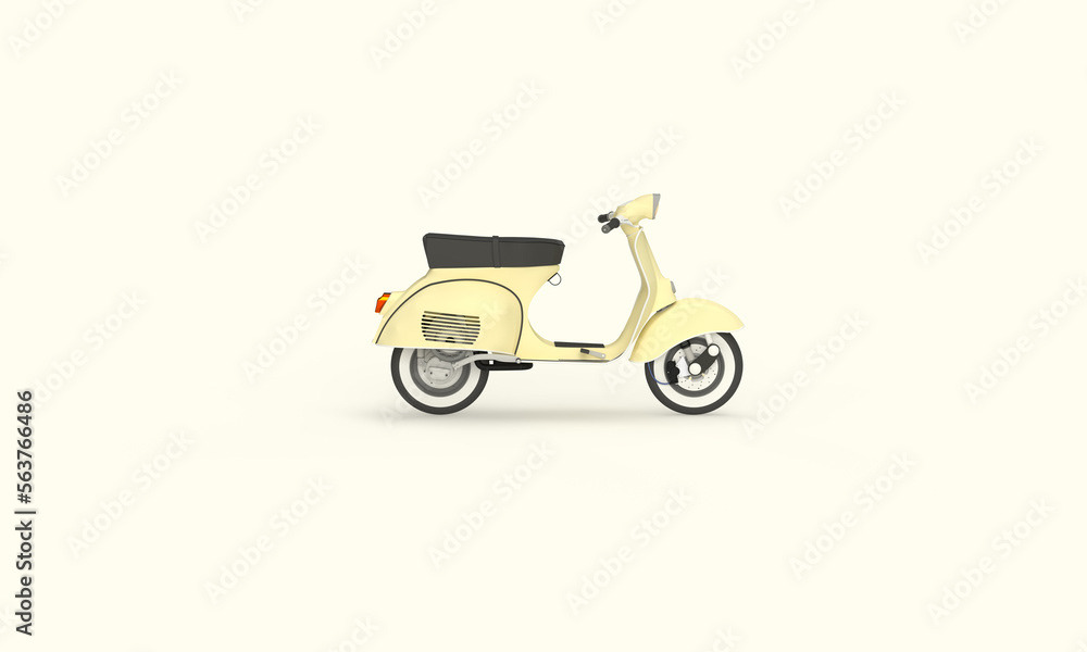 3d render illustrations of Vespa scooter Modern and vintage style. Illustration on the topic of rides, scooters, movement.