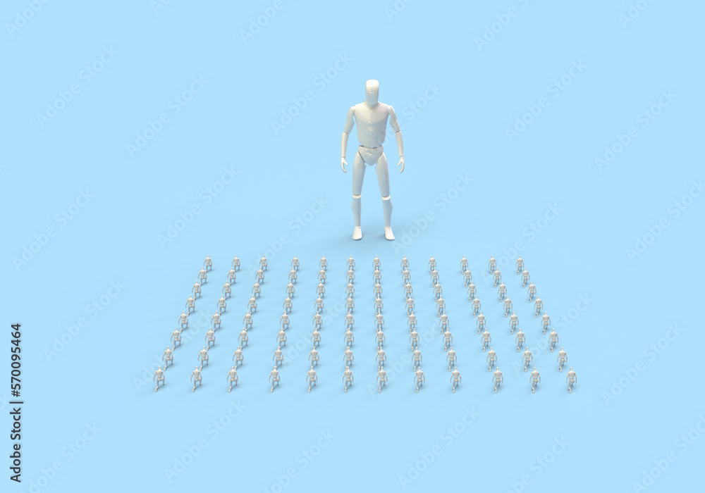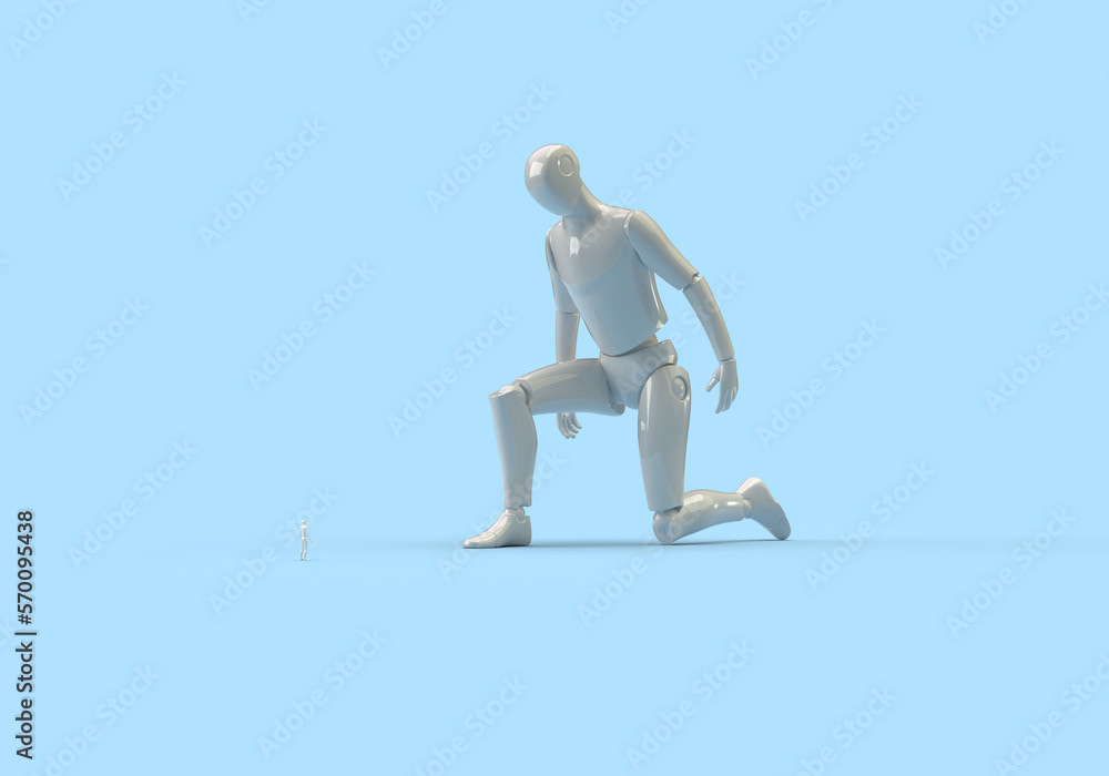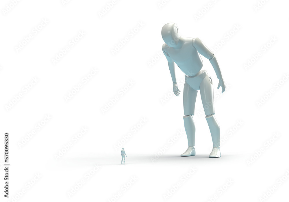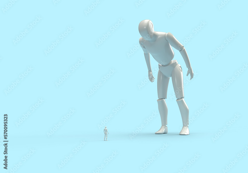 3d render illustrations of large and small work. Modern minimal style. Illustration on the topic of technology, artificial intelligence, robotics.
