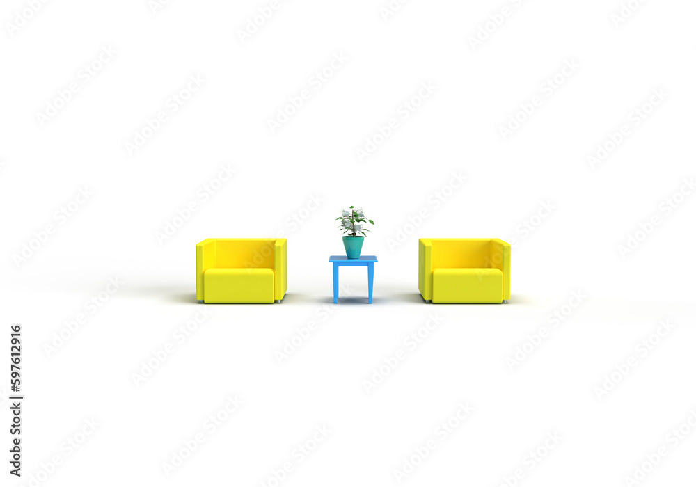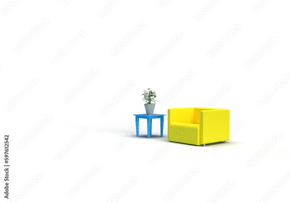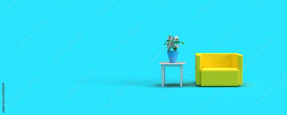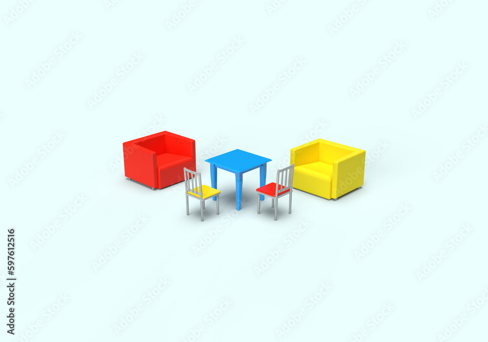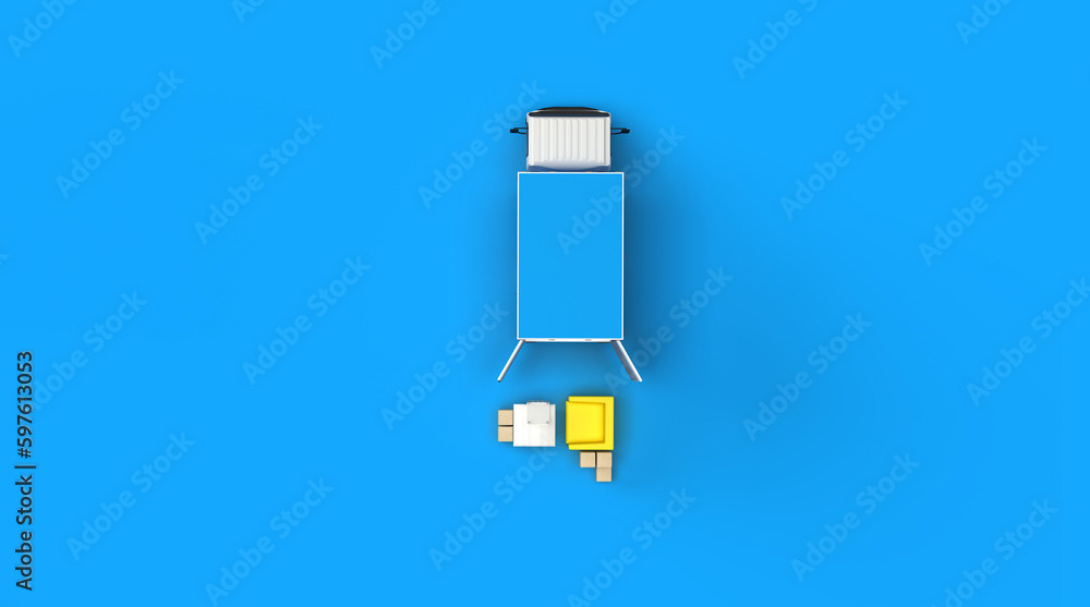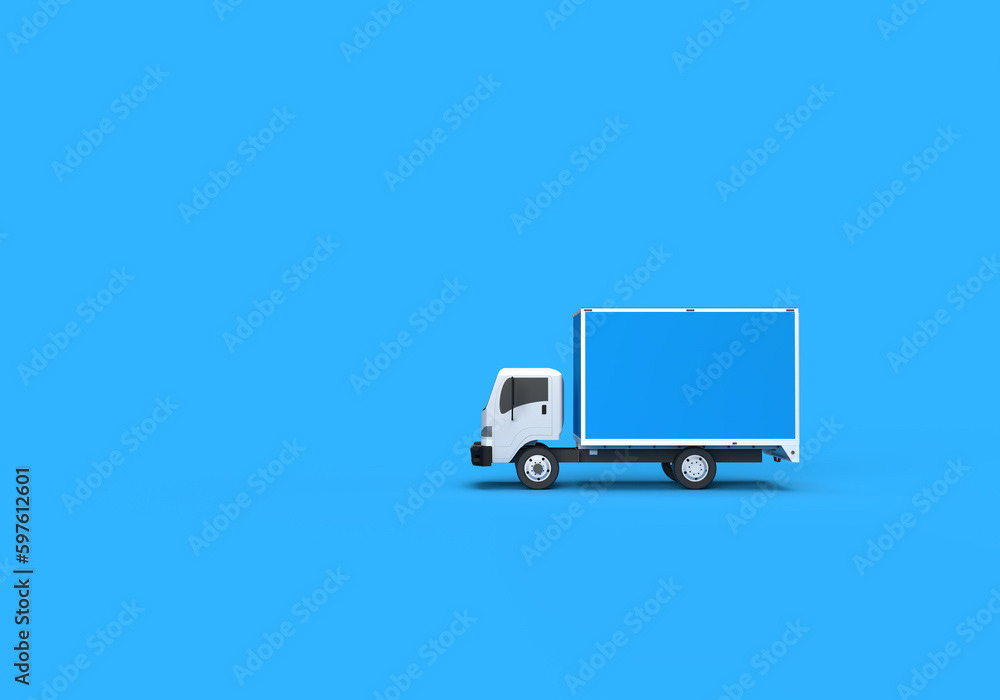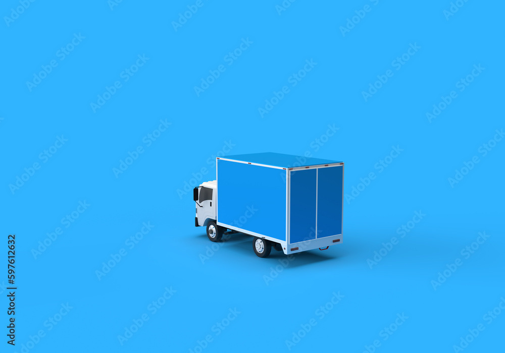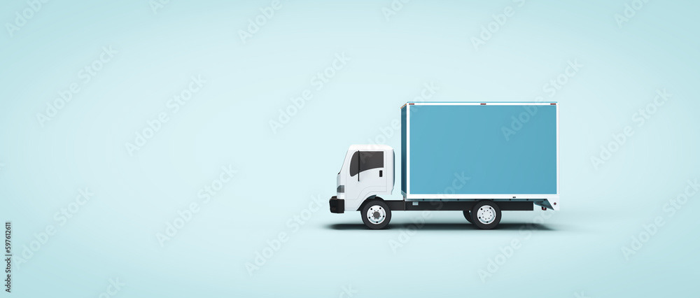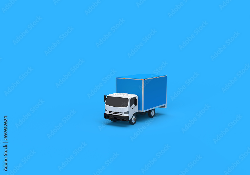 3d render illustrations of a truck, furniture, boxes. Illustration on the topic of cargo transportation, relocation, change of residence, commercial transport, delivery of sea cargo, transport and things. Modern style.