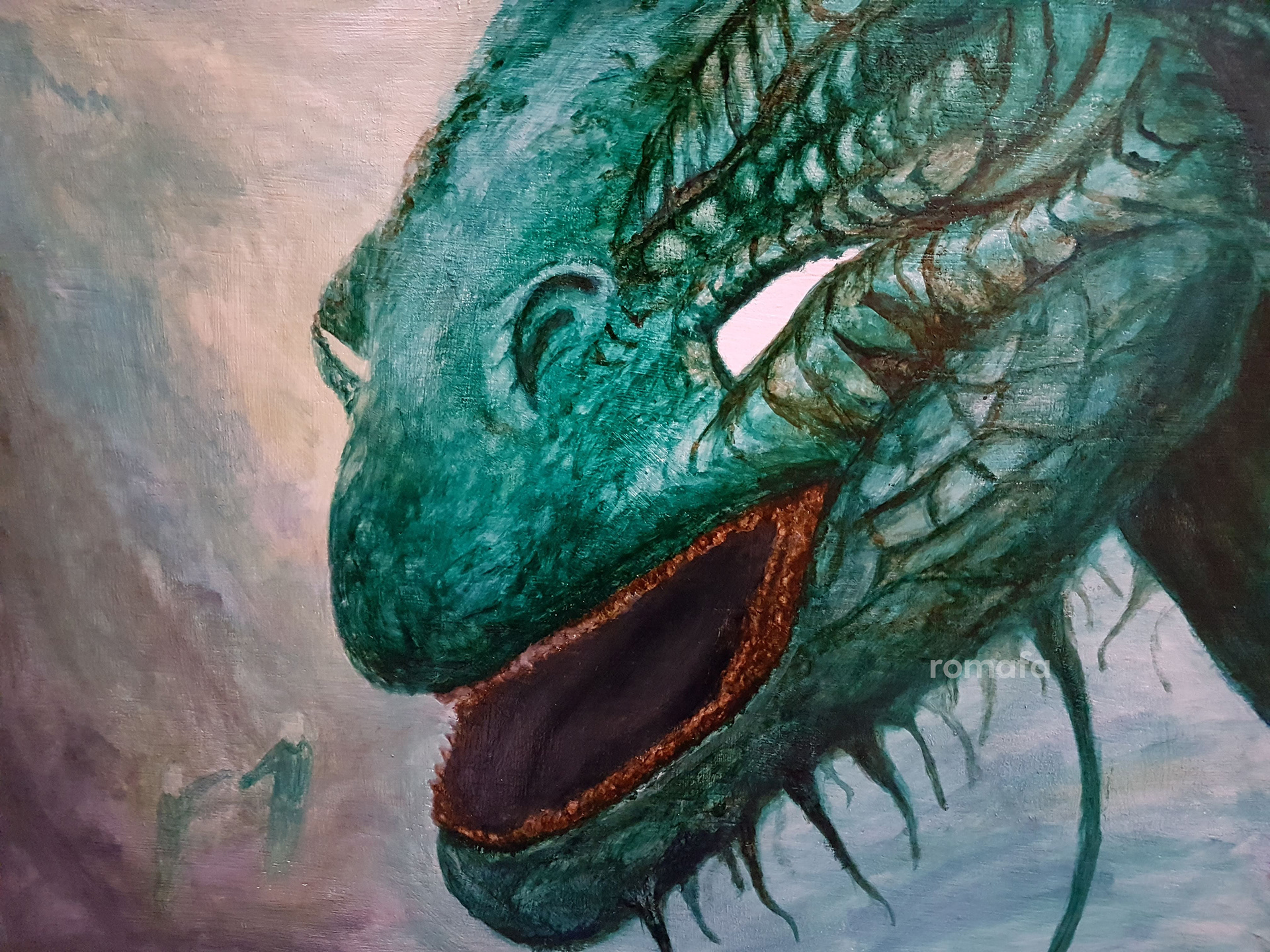 I drew a big head because the dragon is big. Next to two people, pointing at each other. They complain and sort things out. The dragon listens attentively. The dragon is the judge, he decides on the punishment.