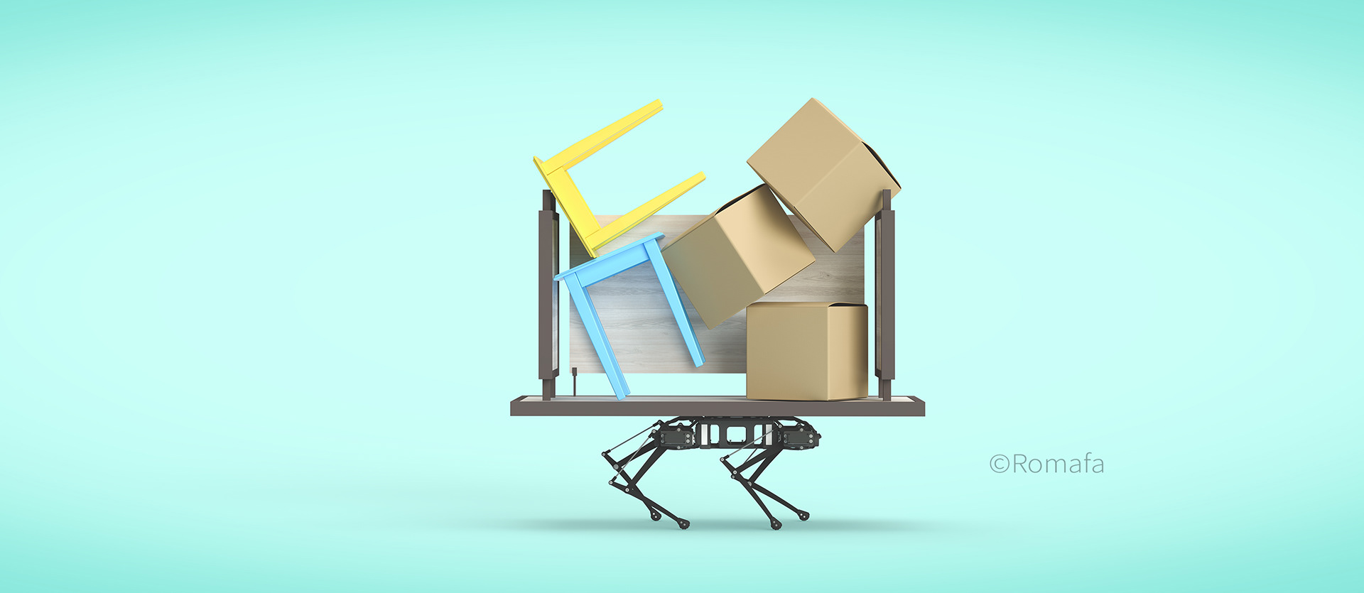 Minimal 3d rendering style of a dog robot