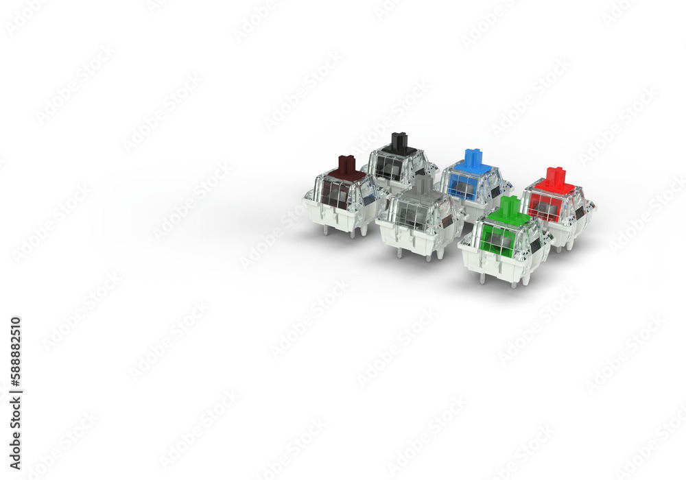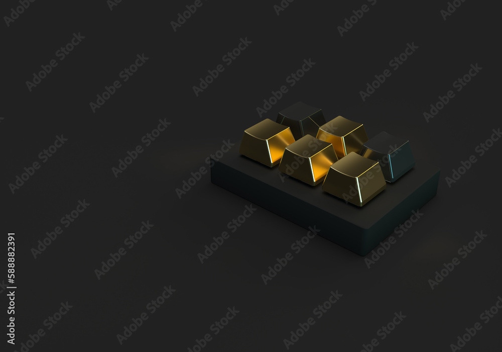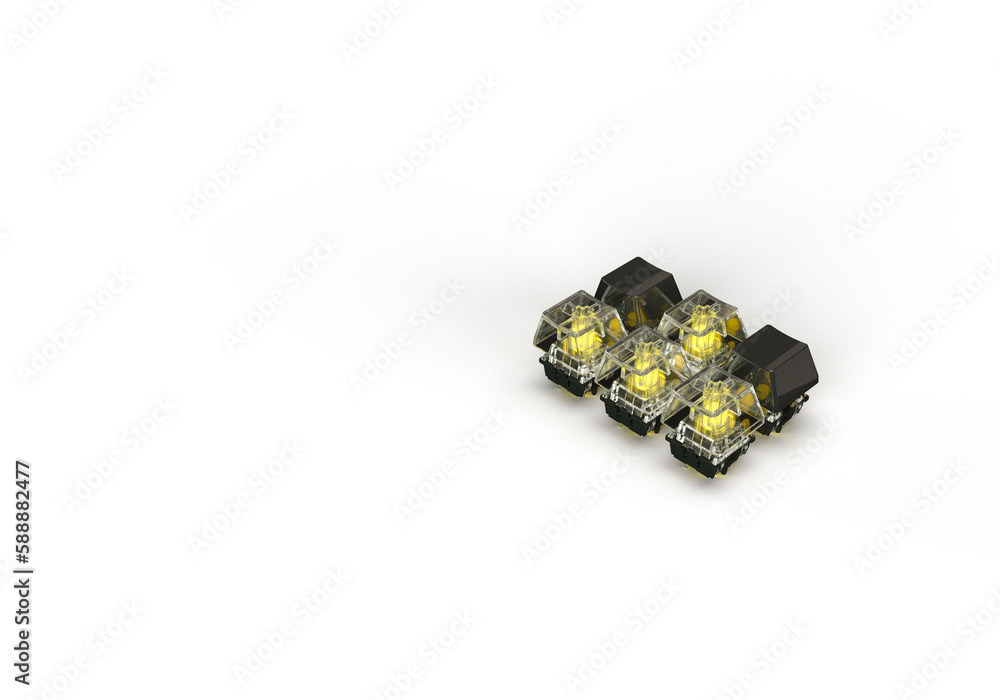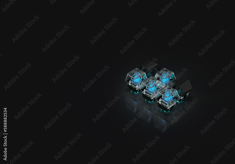 3d rendering of computer keyboard illustrations. Illustration on the theme of games, esports, keyboards, keys, switches. Minimal style.